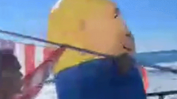 The moment Michael Curl, 36, ran up to the man in the costume, identified as Jonathan Silvera, kicked him from behind and tackled him, captured on cellphone video.